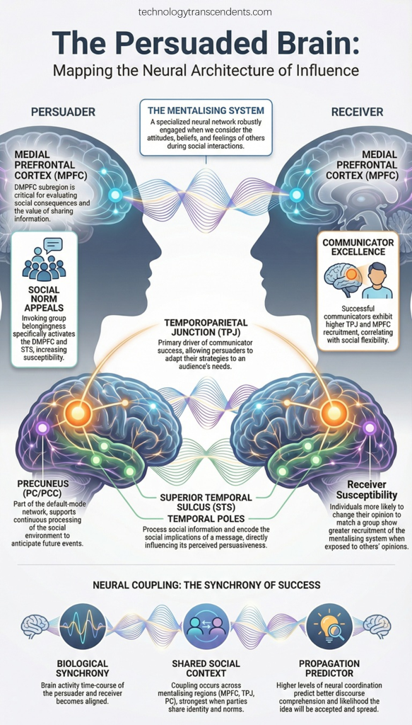 For the strategist, identifying the mechanisms of belief is paramount. Effective persuasion in global statecraft relies upon exploiting the human “mentalising” system—the cognitive capacity, or Theory of Mind, to infer the intents and mental states of others. Persuasive appeals are designed to engage this system, seeking to align the target’s mental state with the persuader’s objectives through subtle pragmatic cues that AI can now simulate with alarming precision.